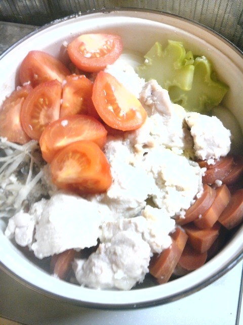 塩糀鶏レモンポトフ なぜって?チーズを作ったから自家製レモンチーズを作ったあとの自然に鍋に落ちた水分て栄養たっぷりそうだし、いい香塩糀浸けの鶏モモ肉、ブロッコリーの茎、土皮付き牛蒡、白菜の芯、金時人参…と、飲みかけの日本...
