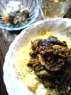 茄子キーマカレー Category:台所遊び Date:2013年05月07日 ミントを大量に刻んで生姜味噌を隠し味に少し苦みのあるひりっと辛いカレー ターメリックのバターライスに刻みパセリ 山芋とブロッコリー茎、プルーンとマンダリンでヨーグルトサラダ レモングラスのアイスティー アコギを弾くピアニストくんが次々と作曲してるうちにこちらも次々と料理して最後のほうはアイリッシュ珈琲を飲みながらゆったりと聴いてました モノを創るもの同士はちょっとしたせめぎあいも愉しめるのかも♪ [0回]PR