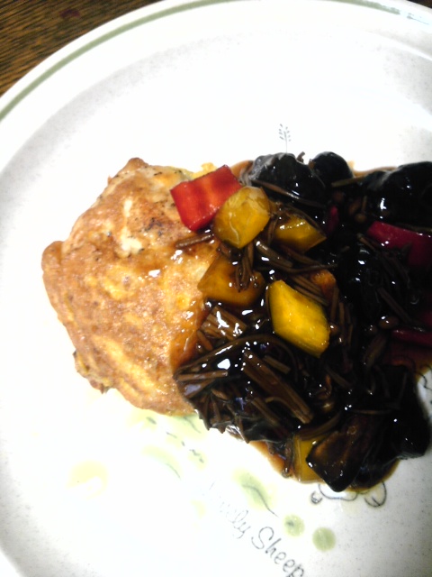 鰆の蕎麦粉ピカタ茸あんかけ Category:台所遊び Date:2013年05月07日 干し椎茸が真っ黒ちゃんになってしまったので干しエノキと一緒にゆっくりゆっくり戻してあげて昆布茶で味付け、片栗粉でとろみ付け あんまり真っ黒なんでパプリカの赤と黄が映えます 山芋のさいの目切りを蕎麦粉で混ぜ潰したら、卵をひとつ、ターメリックをひとふり 塩、胡椒した鰆を浸して両面焼いたら一呼吸蒸してできあがり カレーオムレツ?と聞かれてしまう見た目ですが味は和風なのよ~ 晴れた空が続いていて歌姫ちゃんは卵焼きを作り続けているようです [0回]PR