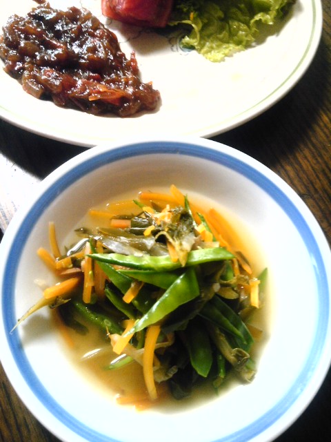レモングラスの沢煮椀風 Category:台所遊び Date:2013年05月07日 鶏皮の出汁に人参、大根葉、葱を千切り出汁袋にレモングラスを詰め込んで投入 おつゆが減ってきたらレモングラスを取り出して昆布塩をひとつまみ 千切りのキヌサヤが鮮やかな緑に変わったらできあがり 手作りケチャップを敷いたお皿に、揚げたてカツが運ばれて来るあいだシャクシャク食べるスープを楽しんでてくださいね あケチャップがない~というばーちゃんの声でトマトを刻むとこから始まった本日のメニューなのですとか話してるうちにカツが揚がりましたよ はいはいではではビールです、乾杯~ 日が長くなってまだ明るい暑いくらいの夕方ビールが旨いです [0回]PR