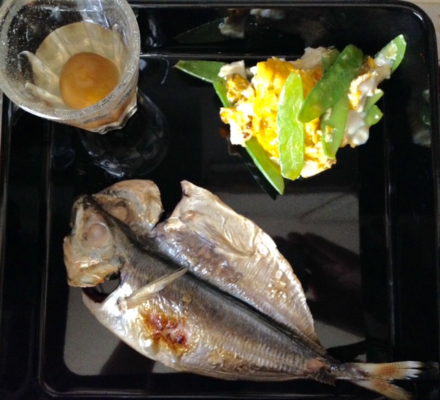 鯵の干物と絹さやえんどうの卵とじと梅ジュース Category:台所遊び Date:2017年06月16日 黒塗りの重箱に並べたらそれぞれの色が映えて美味しそうこれに雑穀ご飯と豆腐の味噌汁を合わせて朝の御前にしました[0回]PR
