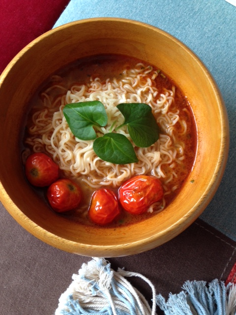 トマト入りトムヤムクンラーメン Category:台所遊び Date:2017年08月31日 小庭のトマトを収穫しては冷凍していましたトムヤムクンラーメンを作るときに鍋に凍ったままのトマトを3~4個入れて煮ますちょっとだけ酸味が複雑になってちょっとだけ辛さが円やかになり新鮮なドクダミの葉が色、香、味の全てでこのトマト麺に合っていますなあ暑くなった昼下がりに咳き込まないように気を付けながらお腹の内側からカッと熱くなりましたまだまだ残暑は厳しいけれど午後も頑張れそうです[0回]PR