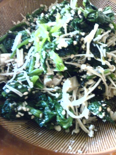 干しエノキと間引き菜の胡麻和え Category:台所遊び Date:2013年05月28日 鍋で煎った白胡麻すり鉢でゴーリンゴーリンしてる間に干しエノキがくたくたに戻りました間引いたばかりのほうれん草、ゴマ菜、オクラの双葉に熱湯を回しかけ氷水にとってキュッと絞るときれいな緑色 小庭で揺れる蒼紫色のタイムの小花黄色い花先を囲むドクダミの白い十文字艶艶アボカドも今年は調子よさそうみんなにはお水をた~っぷりと だんだんと深まってくる緑の濃さにおかずも隠し味で対抗しましょう 焼き海苔をちぎってさっくり混ぜれば水気もちょうどよくなり干しエノキの旨味が引き立ちます 食べる直前に、二年物の梅醤油こんな夏日によい味わいです ピアニストくんはライブ続きでご飯を食べに寄りませんねぇと思ってたら久しぶりに眠そうな感じで現れて、ギターを掻き鳴らしいよかんを持ってゆきます、みっつ、いい?とまたまた大荷物で歩いてゆきました 今日はみんな夏の気分ね [0回]PR