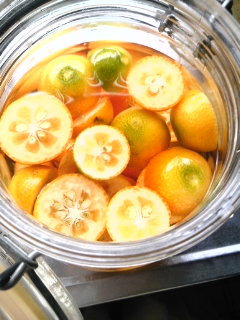 金柑ワイン浸け Category:台所遊び Date:2013年07月03日 夏風邪にご注意! ばーちゃんの庭で金柑の大きな実が重たくなって呼んでます 少し青いのも混ぜてふたつ割りにしては瓶へ白ワインでヒタヒタにしてカッチリと蓋を 来月になったら役に立ちます それまでおやすみなさいです [0回]PR