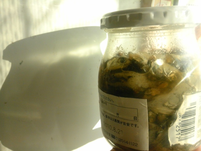 鰯の頭も信心から醤油へ? Category:台所遊び Date:2013年01月12日 浜辺で頂いたとれとれ鰯を手で開いてオリーブオイル浸けを初めて作った年に残った鰯の頭と粗塩を瓶につめて醤油になりますように!と念を込めて蓋をしたのです 今年の記念日に出してみたら、薄いおつゆができていましたまだまだ塩辛いだけですが、これからもゆっくりゆっくり自然に任せていこうと改めて蓋をしました いつか食べさせてあげたいひとがやってきて、ちょうど美味しくなっているに違いない必要な時間をかけて一番いいときに出会えるのを、信じていることが嬉しいのです 食べ物語りはまだまだ続く…♪[1回]PR