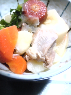 ダブル人参で根菜鶏スープ Category:台所遊び Date:2013年12月14日 冬になったらこれです皮のほうをジューッと焼いて大根、洋人参、金時人参、ジャガ芋はころんとまるごとコンソメでゆっくり煮込んでゆきます台所が温もってスープも美味しくなってゆくこんなゆったりした時間にはいろんな音が少しずつ聞こえてくるのであれこれ想像します風の音や子供達の声鳥の羽ばたき車のエンジン音聞き慣れたメロディーピアニストくんが音作りを始めたようです[0回]PR