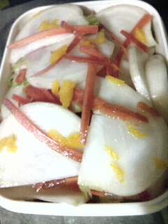 タッパーでギュウッと浅漬け Category:台所遊び Date:2013年12月26日 かぶの薄切りと金時人参の千切りに塩をふってヘタらせて柚子を搾って、刻んだ皮ものせてタッパーの容量を越えるくらいに詰め込んだらフタをして一晩けっこうヘタヘタに減ってます美味しくなってなんでもこんな感じにギュウッと旨くいかないかしらね[0回]PR