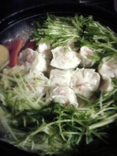 エビシウマイと水菜の生姜鍋 Category:台所遊び Date:2014年01月11日 スイッチオンしまぁすこれからグツグツ煮立ってきたら食べ頃ですよ下に隠れてる、昆布、干し椎茸、白菜の白いとこ、大根の青いとこそしてチラ見えしてる、金時人参などなどがいい味を出してくれますひとかけらポンと入れた生姜が効いてますほ~らだんだん台所も温まってきました北の方から乗りつけてガタガタ震えながら待ってた画家氏も眼鏡が曇って、すぐにお腹が温もってきますよ[0回]PR