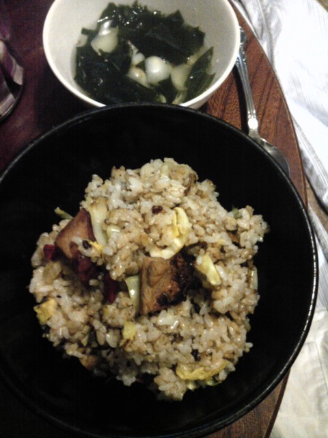 ごろごろ焼豚炒飯、若布と百合根の胡麻スープ Category:台所遊び Date:2013年01月19日 少し疲れてたのが元気になり始めて肉食べたい~けど体がついて来ないかも~と迷ってるようなので 大蒜を胡麻油で炒めて焼豚ごろごろの炒飯を豪快に作りますいりこの出汁で百合根と若布と白胡麻をたっぷり入れたスープは、柚子焼酎で仕上げます なるほどダブル胡麻だぁ、といい香りに包まれてガッツリお腹に蓄えたらぐっすり眠って明日は体が自然に動くようになりますよ~大丈夫![0回]PR