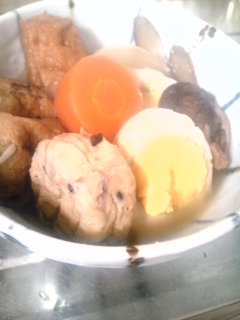 おでん風煮 Category:台所遊び Date:2014年02月01日 がんもどきやら厚揚げやらどんこやら金時やら牛蒡やら茹で卵やら牛蒡天やらいりこと昆布の出汁でゆるゆると煮込みながら鍋横で本を読んでました小さな木の椅子に腰掛けて[0回]PR