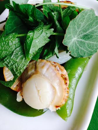 ホタテのハーブ蒸し Category:台所遊び Date:2014年04月27日 タイムでソテーしたホタテとスナップエンドウシソとキンレンカをトッピングしてヤスミンの小庭風緑の美しい季節に台所まで緑の気色を呼んでみましたい~薫り[0回]PR