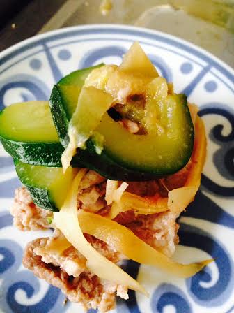ズッキーニと豚の生姜煮 Category:台所遊び Date:2014年06月13日 ズッキーニも基本は南瓜でしょうと大らかに新生姜と豚肉で煮てみましたトロトロと柔らかくサッパリ味に少し炒めてから煮たのがよいみたい前菜向きですね[0回]PR