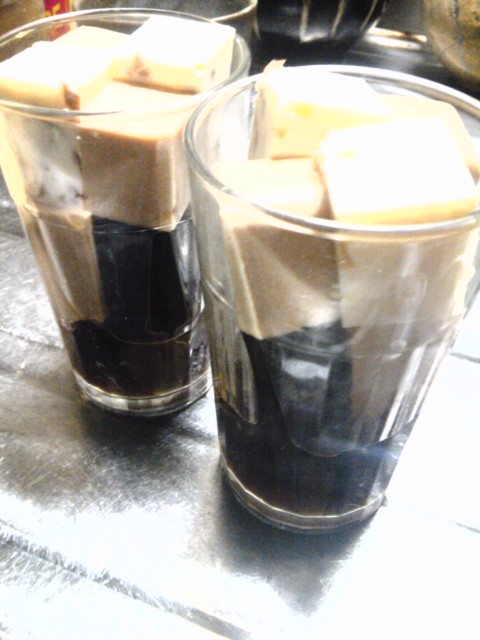 トリプルキューブ珈琲寒天 Category:台所遊び Date:2013年01月24日 食べてくれるひとがいて、食べてもらいたくて作るのって愉しい! 甘いものが苦手な彼女のために月夜の宅配しました アイリッシュ珈琲寒天カフェオレ寒天ブランデー漬けレモンピール入り濃厚ミルク寒天グラスに□◇◆詰め込み◆◇■積み上げで、一応シロップ別添え食べる直前だけ冷蔵庫へしかも30分以内これでぷるるるるるんっのままひんやり食べ頃 室温作成なんで冬しか作れないし、外気温が低くないと配達できないのでこれも旬のものですね また何かの食材で私のインスピレーションを掻き立ててちょーだいねと、おねだりも忘れずしておきましたよ 次は何を作りたくなるかな美味しい物語りは続く~♪[0回]PR