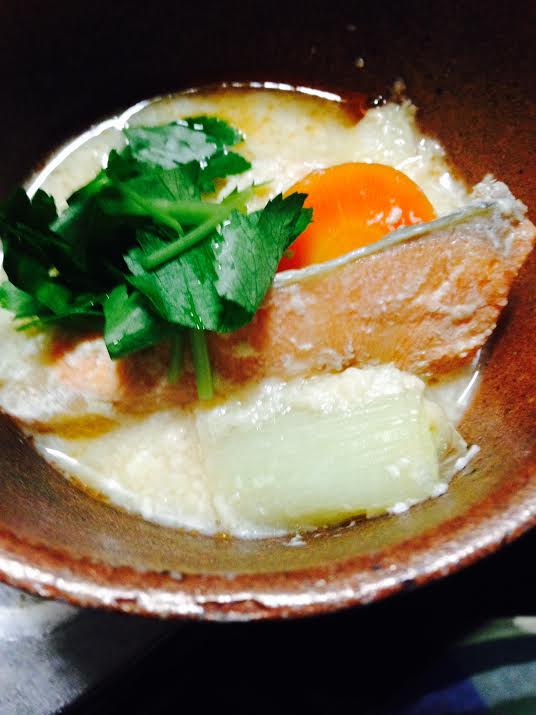 鮭の粕汁 Category:台所遊び Date:2014年10月27日 酒粕は時間がたってもいい香りが残っているものですね冷蔵庫で冷たくなってた酒粕を手で小さくちぎって水のうちから鍋に沈め小さな火でゆっくり煮溶かします根菜類と骨付きの鮭じっくり煮出すようにしてちょいと味見もう少しかな?と感じた塩加減のぶんだけ味噌を煮溶かしたらできあがりお椀が近づいてくるときから香り後口まで余韻が残る粕汁魚が苦手なピアニストくんもうまいうまいと食べてくれましたよ[0回]PR