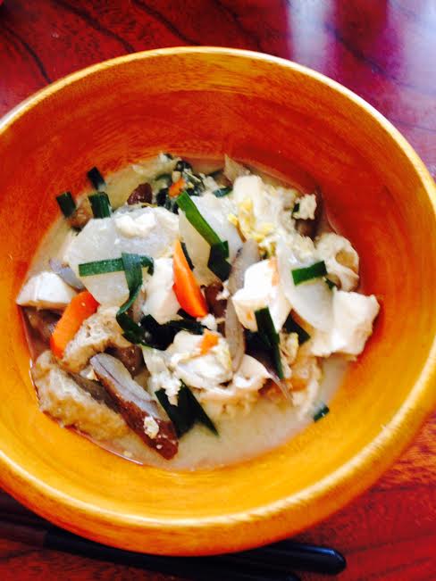 韮玉汁 Category:台所遊び Date:2014年10月27日 大根、牛蒡、人参、揚げ、全部の味が出揃うまで煮たら豆腐を入れて一煮立ちしたら味噌味にして溶き卵、韮をのせて蓋をしますいち、に、さん火を止めてできあがりふわふわのできたてがしぼんでしまわないうちに韮玉汁が早く早くと呼んでいますよ[0回]PR