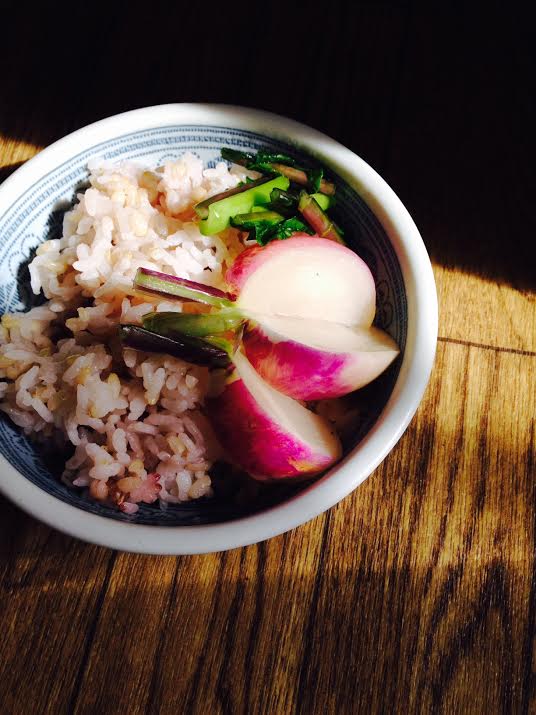 蕪の浅漬けで雑穀入り玄米ご飯 Category:台所遊び Date:2014年11月20日 美しい秋になりました雲ひとつない蒼い空をずぅーっと見てるとほんとに広い大きな半球の中にころんと転がされているよう鮮やかな色の木の葉や野菜はお陽様の光を浴びて生き生きと主張してきますひと手間ですっかり美味しくなってしまう優秀な蕪そして炊きたてご飯空の中のきりんさんとたくさんおしゃべりしてちょっと日焼けしたような眩しさに目を細める秋です[0回]PR