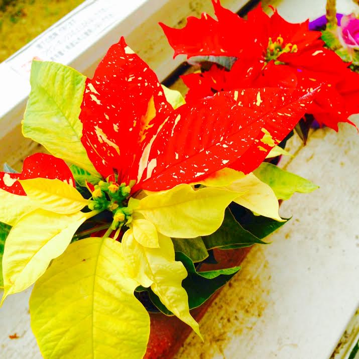 ポインセチア Category:台所遊び Date:2014年12月28日 まだら模様が個性的な2色のポインセチアが窓辺で目立ってます北の空が青く明るく澄んでいたら冬の乾いた空気の中で本当に鮮やかですゆらゆら揺れて話しかけているよう食べちゃいたいですが食べられないかな~[0回]PR