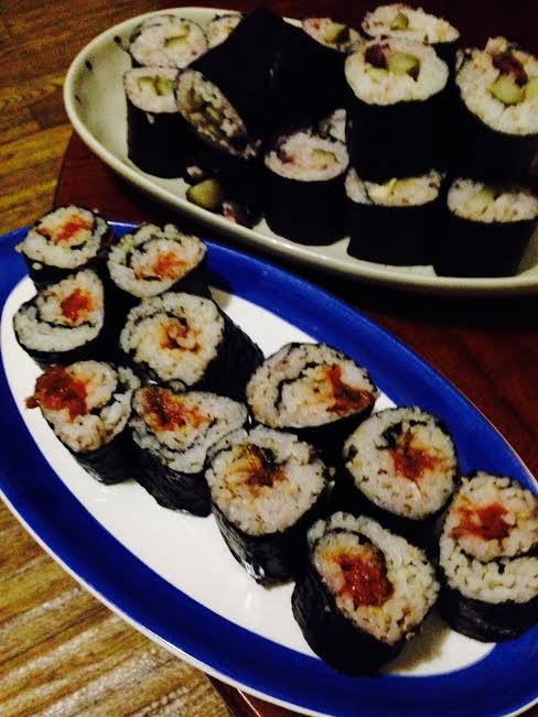 いそがしくなる前の、海苔巻き Category:台所遊び Date:2015年01月12日 浸かり過ぎた胡瓜漬け生姜の甘酢漬け潰れ梅に花かつを頂き物の柴漬けの残り色々合わせて海苔巻きにします酢飯も味付けも要らないからカンタンひとくちサイズに切って山盛りにして置くので通りかかりにつまんでいってね何かと台所がいそがしくなる前にこうして準備しておくのです二度と同じ味はありませんいつものことだけど[1回]PR
