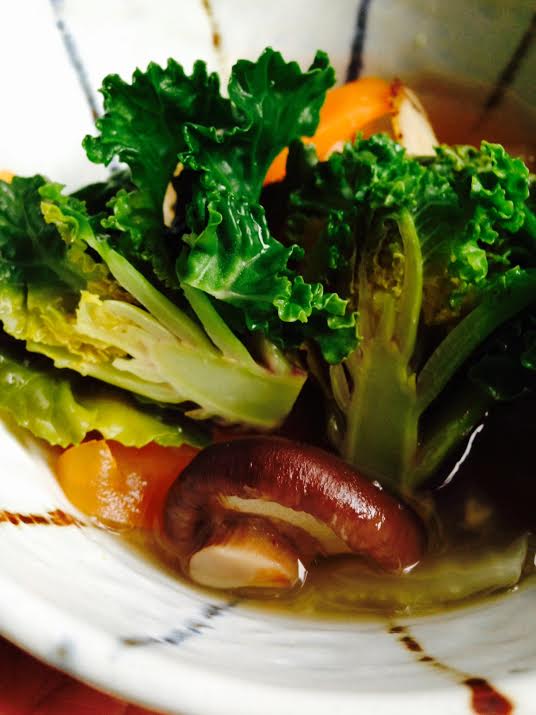 プチヴェールのニョクマム野菜スープ Category:台所遊び Date:2015年02月12日 牛蒡、人参、椎茸いつものメンバーを蒸し煮にしてニョクマムを回し入れたらプチヴェールをのせてもう一煮立ちいつもとはちょっと違う香りと味わいご飯にナッツをかけてお出迎えしたくなるスープです[0回]PR