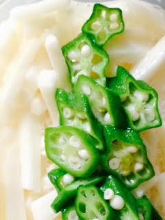 山芋オクラ Category:台所遊び Date:2015年07月10日 冷蔵庫の中で美味しくなるシリーズ山芋を出汁醤油と酢で和えてサッと茹でたオクラも一緒に漬け込んで冷します緑が変色してくるので早めに食べてあとは塩もみした胡瓜や新生姜、茗荷、大葉など足しながらだんだん味が染みてゆくのと新しい具材のフレッシュな感じとを日に日に楽しむのです冷蔵庫はエライなー[0回]PR