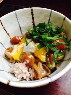 ナメコとろろ昆布丼 Category:台所遊び Date:2015年07月17日 べとべとナメコを湯通ししたらとろんつるんと逃げ出しそう豆腐と一緒に早く卵でとじてしまわなくちゃとろろ昆布と大葉でお出迎え蓮華ですくっていただきましょう口の中でもあちこち逃げ回ってるよ[0回]PR