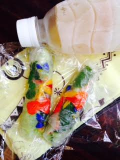 二年仕込み梅ジュース、ハーブ生春巻き Category:台所遊び Date:2015年07月24日 よくよく寝かしてまろやかになった二年物の梅ジュースが昨日から冷凍室でお待ちかねでしたおかずは小庭でとれたての旬のハーブをテンコ盛りの生春巻きです湿らせた春巻きの皮の上にレタス、大葉、胡瓜の生姜漬け、ドクダミ、湯通しした露草の新芽水気調整役に干海老ジュースの梅の実とニョクマムで雰囲気のある味と香りに半分まで堅めに巻いてキンレンカと紫露草の花をはさんであと半分巻きますとほら鮮やかにできましたよ熱い空気の中へおでかけするとちょうど半溶け飲みごろの梅ジュースと横にくっついてヒンヤリしたままの生春巻きとい~いタイミングでいただけるのです波の音がきらきらしているのが熱風でわかります海にとっぷんとつかりたいなお[0回]PR