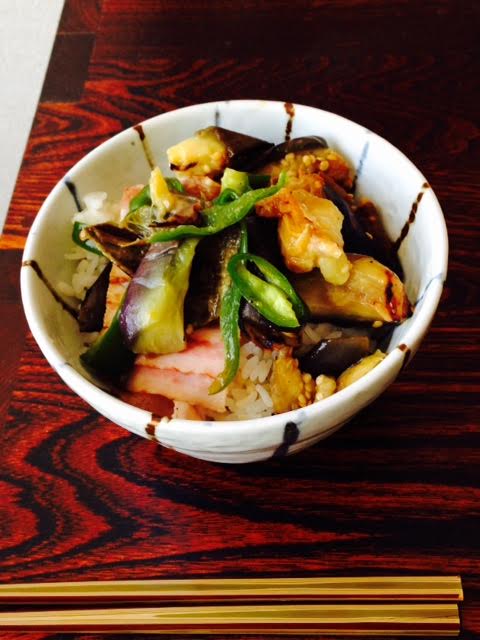 ベーコン茄子丼