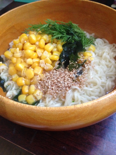 ディルが効いてる胡麻塩コーンラーメン Category:台所遊び Date:2016年01月19日 塩ラーメンに切り胡麻それだけでも香ばしい若布とコーンを奮発して甘い香りのディルをのせたらお天気屋台風になりますよちょっとだけハテナ?な感覚日常から外れて小さくトリップするごはんの時間が始まります[0回]PR