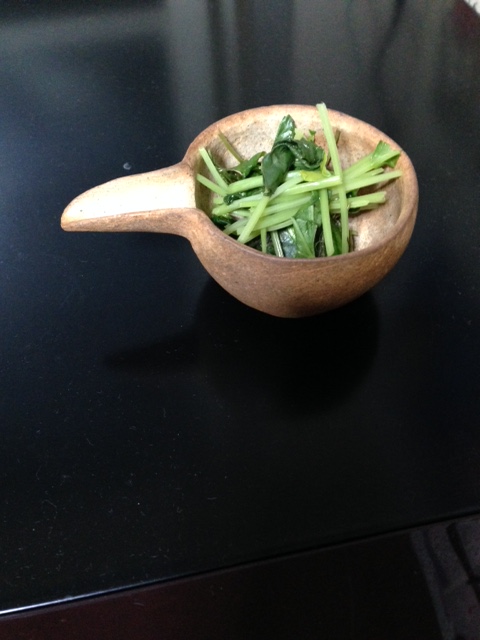 豆苗とモロヘイヤのお浸し Category:台所遊び Date:2016年01月19日 豆苗をザクッと切るともう早くも蓮華畑が頭の中に広がり始めます強い豆の香りはサッと湯通ししただけでは大人しくなりませんモロヘイヤをザクザク切るとネバネバが騒ぎ始めて茹でた後が思いやられます案の定、ネバネバは苦味のあるとろとろを伴ってエンドレス状態になりましたこのふたつを混ぜて生醤油でシンプルに味付けします力強い野菜とお口の中でバトルしてください元気が出ますよ[0回]PR