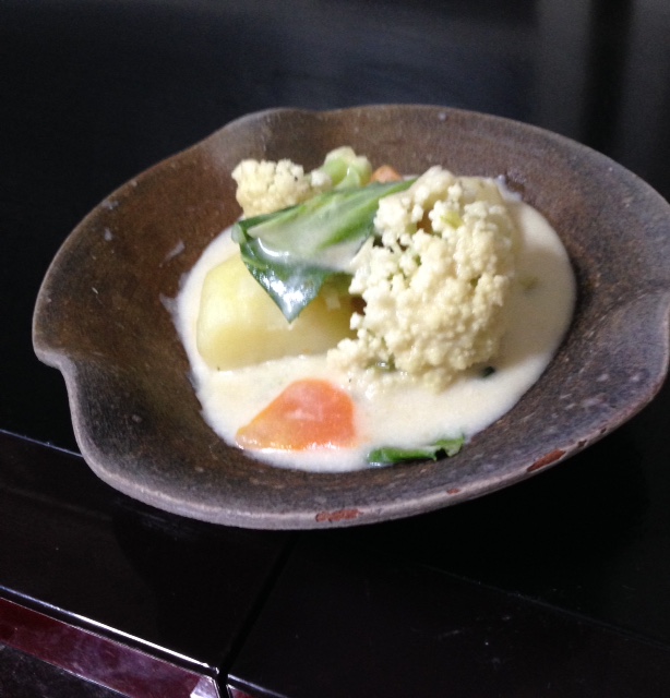 カリフラワーのクリーム煮 Category:台所遊び Date:2016年02月03日 ミルクシチューの具材が売り切れてスープだけになったのでじゃが芋、人参、カリフラワーの茎をたくさん入れて煮含ませるように静かに煮ますことこと、と大人しくは煮えてくれなくて牛乳が大量に入っているためしょっちゅうぐばぁ〜じゅぅ〜〜〜と吹きこぼれますそばにずっとついていなければならないのにあまりすることもないので歌姫ちゃんに昆布の水出汁と、いりこの水出汁と、鰹の一番出汁のとりかたを鍋の上からレクチュアしていました仕上げにすぐ火が通るカリフラワー本体を入れまた少し煮て出来上がりなのですが…言ってることと目の前の煮えてるものとのギャップがあって湯気のせいもあってか頭の中の味がグラグラ味見しても何だか?¿⁇¿あれ〜〜?[0回]PR