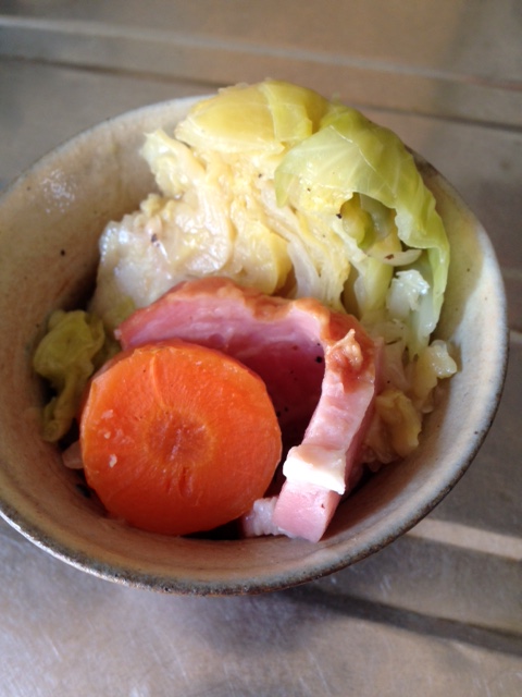 キャベツとベーコンの煮込み Category:台所遊び Date:2016年03月11日 まだまだ急に冷える夜もあるので脂身の多いベーコンを常備してます春キャベツが出回って洋人参のでっかいのと存在感を二分してますね種類は少なくても互いの良いところを引き出しあって温もりのある味になりますおつゆは少し煮詰めて少なめ野菜の水気が食べてる間にいいくらいの塩梅にしてくれます安心して委ねているのも芯から温もりますよこうして食べながら季節の行ったり来たりをゆっくり眺めていましょう[0回]PR