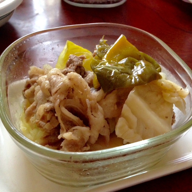 春野菜と牛肉の出汁酢醤油煮 Category:台所遊び Date:2016年05月04日 春キャベツ、ピーマン、新玉葱牛切り落とし肉と共に出汁の中でささっと煮て酢醤油で味を決めます生野菜感の残るさっぱりした味わいに肉の甘さが引き立ちかなりの量を食べてしまいます暑くなってきたらくたくた煮ないのがいい感じ[0回]PR