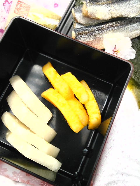 長屋の花見よろしく Category:台所遊び Date:2013年03月31日 重箱に大根の塩糀浸けと大根の塩糀浸けのターメリック和えと 蒲鉾や卵焼きに見立てたという落語を引用しながら あまいもの苦手なカノジョと、こないだ傘を忘れたカレシと一緒に昼前から桜の根肩でお茶けならぬビールの飲み比べ大会です 花びらだけじゃなく五弁の花のまま舞い降りてきて酢魚がちょっと洒落たしつらえになりましたよ [0回]PR