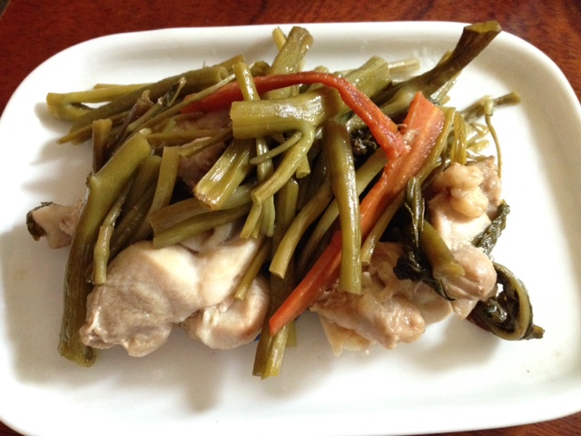 空芯菜茎と鶏モモ肉のナンプラー炒め Category:台所遊び Date:2016年07月20日 梅雨も後半の雷雨を聞きながら機嫌よく厚手の鍋に話しかけて(?)おりますジャジャッと炒めてナンプラーで味付け手早く作るとシャキシャキして独特の香、と食感もうすぐ真夏になります[0回]PR