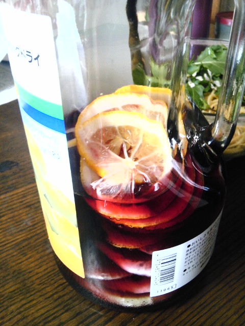 初夏へ向けてのサングリア Category:台所遊び Date:2013年04月04日 ばーちゃんの野菜篭からブンタン、ブンタン、レモン、レモン、2リットルペットボトル赤ワイン! サングリアを作ってという品揃えですねぇ初夏に向けて爽やか系のを仕込みます明日、林檎を足そうかな? 上のほう出ちゃってるのを毎日沈めてね~美味しくなあれと、おまじないの声かけもお忘れなく! [0回]PR